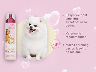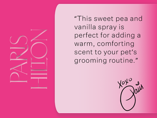 Give your pup the VIP treatment with our Sweet Pea & Vanilla-scented Deodorize & Detangle spritz! This luxurious spray instantly refreshes your dog's coat, leaving it softly scented and totally cuddle-ready. It's like a little spritz of fabulousness that keeps your fur baby smelling divine and looking chic.