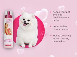 Give your pup the VIP treatment with our Apple Blossom-scented Deodorize & Detangle spritz! This luxurious spray instantly refreshes your dog's coat, leaving it softly scented and totally cuddle-ready. It's like a little spritz of fabulousness that keeps your fur baby smelling divine and looking chic.
